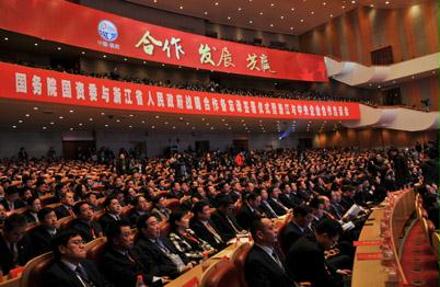 12月26日,國(guó)務(wù)院國(guó)資委與浙江省政府在杭州簽署《浙江省人民政府與國(guó)務(wù)院國(guó)有資產(chǎn)監(jiān)督管理委員會(huì)合作備忘錄》,并共同舉辦浙江與中央企業(yè)合作洽談會(huì),商定在“十二五”期間,共同推進(jìn)中央企業(yè)與浙江進(jìn)行深入和廣泛的戰(zhàn)略合作,充分發(fā)揮浙江區(qū)位優(yōu)勢(shì),促進(jìn)多種所有制企業(yè)共同發(fā)展。國(guó)務(wù)院國(guó)資委主任、黨委書(shū)記王勇與浙江省委副書(shū)記、代省長(zhǎng)夏寶龍代表雙方簽署合作備忘錄。浙江省委書(shū)記趙洪祝出席儀式并講話。國(guó)務(wù)院國(guó)資委副主任黃丹華、金陽(yáng),副秘書(shū)長(zhǎng)郭建新出席簽字儀式。