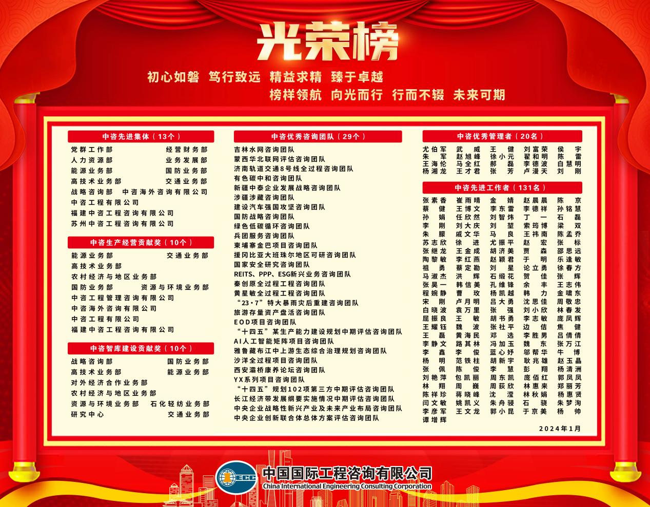 闊步新征程,昂首向未來。1月30日,中咨公司召開2024年度工作會議。會議的主要任務(wù)是,以習(xí)近平新時代中國特色社會主義思想為指導(dǎo),全面貫徹黨的二十大、二十屆二中全會精神和二十屆中央紀(jì)委三次全會精神,落實(shí)中央經(jīng)濟(jì)工作會議部署和中央企業(yè)負(fù)責(zé)人會議要求,全面總結(jié)公司2023年工作,聚焦新時代新征程面臨的新形勢新任務(wù),謀劃下一階段落實(shí)好“五五戰(zhàn)略”的具體路徑,部署2024年重點(diǎn)任務(wù),推動公司高質(zhì)量發(fā)展再創(chuàng)新局面。 公司黨委書記、董事長、總經(jīng)理茍護(hù)生作《扎實(shí)推動“五五戰(zhàn)略”落地生根 奮力開創(chuàng)公司高質(zhì)量發(fā)展新局面》主題報告。黨委委員、總會計師王麗靜主持會議。黨委委員、中咨戰(zhàn)略研究院執(zhí)行院長竇皓宣讀《公司黨委關(guān)于表彰2023年度先進(jìn)集體和先進(jìn)個人的決定》。黨委委員、副總經(jīng)理潘小海傳達(dá)中央經(jīng)濟(jì)工作會議、中央企業(yè)負(fù)責(zé)人會議、全國發(fā)展和改革工作會議精神。黨委委員、副總經(jīng)理沈浩傳達(dá)國務(wù)院國資委黨風(fēng)廉政建設(shè)和反腐敗工作會議精神。國家審計署企業(yè)審計八局有關(guān)同志以及公司外部董事楊愛民、余德輝出席會議。會議期間還表彰了2023年度先進(jìn)集體和個人以及簽訂2024年度經(jīng)營考核責(zé)任書。 會議指出,2023年,公司深入開展習(xí)近平新時代中國特色社會主義思想主題教育,堅(jiān)定不移落實(shí)“五五戰(zhàn)略”,加快建設(shè)國家高端智庫和世界一流咨詢機(jī)構(gòu),在服務(wù)中央科學(xué)決策和國家重大戰(zhàn)略方面做出突出貢獻(xiàn),核心功能和核心競爭力更加凸顯,圓滿完成國資委各項(xiàng)考核指標(biāo)。公司咨詢服務(wù)工作得到委托方高度認(rèn)可,收到中央部委、地方政府、大型企事業(yè)單位等各方感謝信240封,100多名個人和團(tuán)隊(duì)受到表揚(yáng)。公司榮獲菲迪克“卓越工程項(xiàng)目獎”“優(yōu)秀工程項(xiàng)目獎”各1項(xiàng)、魯班獎4項(xiàng)、國家優(yōu)質(zhì)工程獎9項(xiàng),獲得“2023年度誠信經(jīng)營守信踐諾標(biāo)桿企業(yè)”榮譽(yù)稱號。 會議從九個方面系統(tǒng)回顧過去一年的主要業(yè)績。智庫建設(shè)勇攀高峰,上報決策咨詢成果數(shù)量、質(zhì)量雙雙再創(chuàng)歷史新高;服務(wù)國家戰(zhàn)略做出新貢獻(xiàn),在服務(wù)國家重大戰(zhàn)略規(guī)劃評估、國家重大工程建設(shè)、高水平支撐現(xiàn)代化產(chǎn)業(yè)體系建設(shè)和科技自立自強(qiáng)、踐行綠色發(fā)展理念、助力“一帶一路”行穩(wěn)致遠(yuǎn)、保障國防軍工建設(shè)、服務(wù)國資央企高質(zhì)量發(fā)展等方面展現(xiàn)擔(dān)當(dāng)作為;生產(chǎn)經(jīng)營逆勢上揚(yáng),“一利”穩(wěn)定增長,“五率”持續(xù)優(yōu)化;業(yè)務(wù)結(jié)構(gòu)持續(xù)優(yōu)化,新興業(yè)務(wù)穩(wěn)步增長,總部部門與所屬企業(yè)協(xié)同效應(yīng)更加突出,“6+1”全過程咨詢產(chǎn)業(yè)鏈條進(jìn)一步完善;深化改革實(shí)現(xiàn)新突破,形成新時期推動公司高質(zhì)量發(fā)展的“五五戰(zhàn)略”,新一輪改革深化提升行動高質(zhì)量起步,董事會運(yùn)行更加規(guī)范、作用更加突出;建設(shè)世界一流咨詢機(jī)構(gòu)邁出堅(jiān)實(shí)步伐,在對標(biāo)世界一流價值創(chuàng)造、豐富資質(zhì)體系、品牌引領(lǐng)、區(qū)域化布局、數(shù)字化運(yùn)營、標(biāo)準(zhǔn)化建設(shè)、財務(wù)信息化、干部選任、專家隊(duì)伍建設(shè)、智庫成果發(fā)布等方面取得新成效;風(fēng)險內(nèi)控工作持續(xù)加強(qiáng),推進(jìn)審計全覆蓋,健全合規(guī)管理體系,安全生產(chǎn)形勢總體穩(wěn)定;黨的建設(shè)開創(chuàng)新局面,在主題教育中一體推進(jìn)理論學(xué)習(xí)、調(diào)查研究、推動發(fā)展、檢視整改,宣傳思想、工會、統(tǒng)戰(zhàn)、團(tuán)青等各項(xiàng)工作邁上新臺階;全面從嚴(yán)治黨縱深推進(jìn),突出政治監(jiān)督,做實(shí)日常監(jiān)督,加強(qiáng)作風(fēng)建設(shè),開展紀(jì)檢干部隊(duì)伍教育整頓和巡查式、回訪式、機(jī)動式巡視,黨風(fēng)廉政建設(shè)和反腐敗工作走深走實(shí)。公司各項(xiàng)工作全面推進(jìn),呈現(xiàn)穩(wěn)中求進(jìn)、進(jìn)中向好的發(fā)展態(tài)勢。 茍護(hù)生表示,在經(jīng)濟(jì)下行壓力大、改革發(fā)展任務(wù)重、矛盾風(fēng)險挑戰(zhàn)多的背景下,公司取得發(fā)展成績殊為不易,根本在于以習(xí)近平同志為核心的黨中央堅(jiān)強(qiáng)領(lǐng)導(dǎo),是國務(wù)院的信任和各部委大力支持、國資委直接指導(dǎo)的結(jié)果,是全體干部職工團(tuán)結(jié)拼搏的結(jié)果。新的一年要延續(xù)良好勢頭,就要深入研判當(dāng)前形勢,科學(xué)謀劃下步工作??傮w而言,機(jī)遇大于挑戰(zhàn),有利條件強(qiáng)于不利因素。中央重視智庫建設(shè)、支持咨詢機(jī)構(gòu)規(guī)范健康發(fā)展,工程咨詢服務(wù)被列為鼓勵類產(chǎn)業(yè),公司發(fā)展前景光明,要抓住有利時機(jī)、利用積極因素、加快發(fā)展步伐、再創(chuàng)輝煌業(yè)績