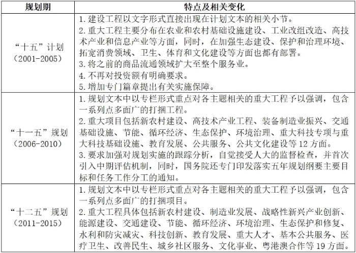 五年規(guī)劃(計劃)文本中重大工程的歷史回顧 李欣玨 曹玫 習近平總書記指出,編制和實施國民經(jīng)濟和社會發(fā)展五年規(guī)劃,是我們黨治國理政的重要方式。重大工程作為五年規(guī)劃(計劃)中的核心內(nèi)容,承載著實現(xiàn)國家戰(zhàn)略目標的重要使命,也是衡量和體現(xiàn)國家綜合實力和發(fā)展水平的重要標志。新中國成立以來,我國共編制和實施了14個五年規(guī)劃(計劃)。從“一五”計劃到“十四五”規(guī)劃,每一個五年規(guī)劃(計劃),國家都要確定百余項重大工程項目作為帶動經(jīng)濟社會發(fā)展的火車頭。14個五年規(guī)劃(計劃)確定的約兩千項重大工程項目,記錄著七十余年非凡成就背后的艱辛和輝煌。以五年規(guī)劃(計劃)為引領,以重大工程項目為牽引,我國經(jīng)濟社會發(fā)展取得了全方位、開創(chuàng)性歷史成就,發(fā)生了深層次、根本性歷史變革,為建設社會主義現(xiàn)代化國家奠定了堅實基礎。即將迎來的“十五五”時期是我國承上啟下的重要時期,是2035年基本實現(xiàn)社會主義現(xiàn)代化的關鍵階段,也是七大深化改革任務的完成期,更是應對復雜安全威脅的高危期,在“十五五”規(guī)劃中接續(xù)謀劃一批計長遠、促發(fā)展、利民生的重大工程項目意義重大。 作為國內(nèi)規(guī)模最大的綜合性工程咨詢機構和中央政府在投資建設領域的重要咨詢單位,自1982年成立以來,中國國際工程咨詢有限公司承擔了我國幾乎所有重大工程項目的咨詢評估任務,深切感受到重大工程項目在現(xiàn)代化強國建設中發(fā)揮的重要作用。本文從歷史維度出發(fā),從計劃經(jīng)濟時期、計劃經(jīng)濟體制向社會主義市場經(jīng)濟體制轉軌時期、社會主義市場經(jīng)濟體制基本建立時期、社會主義市場經(jīng)濟體制完善時期等四個階段,對歷次五年規(guī)劃(計劃)文本中重大工程的特點及變化進行系統(tǒng)回顧。 一、計劃經(jīng)濟體制時期(“一五”至“五五”) 有計劃地發(fā)展國民經(jīng)濟,是新中國成立后的既定方針。為迅速恢復國民經(jīng)濟并推進工業(yè)化進程,借鑒前蘇聯(lián)經(jīng)驗,我國從1953年開始實施第一個五年計劃。“一五”計劃的基本任務是集中主要力量進行以前蘇聯(lián)幫助中國設計的156個建設單位為中心的、由限額以上的694個建設單位組成的工業(yè)建設,建立我國社會主義工業(yè)化的初步基礎。這一時期,重大工程項目主要集中在工業(yè)領域,項目涵蓋鋼鐵、煤炭、電力、機械、化工等多個行業(yè)。在第一屆全國人民代表大會第二次會議審議通過的《關于發(fā)展國民經(jīng)濟的第一個五年計劃的報告》中,各領域重大工程以文字形式體現(xiàn),一般出現(xiàn)在措施、要求、布局、任務等小節(jié),包括建設或改建長春第一汽車廠、鞍山鋼鐵聯(lián)合企業(yè)、沈陽第一機床廠等生產(chǎn)性企業(yè),以及建設武漢長江大橋、青藏鐵路、康藏公路等大型單體項目等。此外,還在計劃中明確了各行業(yè)領域的投資額度分配和生產(chǎn)性單位的產(chǎn)能目標,計劃性特點較為突出。此后,一大批舊中國沒有的基礎工業(yè)部門開始逐步建立,第一批國產(chǎn)汽車出廠、第一架國產(chǎn)飛機試飛、第一座原子反應堆投入運轉。第一個五年計劃的實施奠定了新中國的工業(yè)化基礎。 表1 “一五”計劃中的156個重點項目 注:作者根據(jù)《第一個五年計劃(1953—1957)》等公開資料整理。 隨后,“二五”至“五五”計劃時期,國家相關部門未正式印發(fā)計劃文本。在此期間,雖受到“大躍進”“文化大革命”等政治運動的干擾和影響,國家仍集中力量推進了一批重大工程項目,如“兩彈一星”、南京長江大橋、成昆鐵路、劉家峽水電站和大慶油田等,這些項目在科技創(chuàng)新、基礎設施建設等方面取得了顯著成就?!耙晃濉钡健拔逦濉?,僅用5個五年計劃的時間,我國基本形成了獨立的、比較完整的工業(yè)體系和國民經(jīng)濟體系,為開展社會主義建設積累了經(jīng)驗。 二、計劃經(jīng)濟體制向社會主義市場經(jīng)濟體制轉軌時期(“六五”至“九五”) 改革開放后,我國逐步從計劃經(jīng)濟體制向社會主義市場經(jīng)濟體制轉軌。這一階段的五年計劃在繼續(xù)強調(diào)經(jīng)濟發(fā)展的同時,開始注重社會事業(yè)的協(xié)調(diào)發(fā)展,表明在發(fā)展戰(zhàn)略上,從片面追求工業(yè)特別是重工業(yè)產(chǎn)值產(chǎn)量的增長,開始轉向以提高經(jīng)濟效益為中心,注重農(nóng)輕重協(xié)調(diào)發(fā)展,注重經(jīng)濟、科技、教育、文化、社會的全面發(fā)展。計劃名稱也從“國民經(jīng)濟發(fā)展五年計劃”更名為“國民經(jīng)濟和社會發(fā)展五年計劃”。重大工程項目不再局限于工業(yè)領域,相應擴展到農(nóng)業(yè)、交通、能源、科技、教育等多個領域。 表2 “六五”至“九五”計劃中的重大工程特點 注:作者根據(jù)《建國以來國民經(jīng)濟和社會發(fā)展五年計劃重要文件匯編》等公開資料整理。 “六五”時期國家的主要任務是繼續(xù)貫徹執(zhí)行1979年黨中央提出的“調(diào)整、改革、整頓、提高”八字方針。隨著全黨全國工作重心的轉移,“六五”計劃的重大工程安排也以提高經(jīng)濟效益為中心。從體現(xiàn)