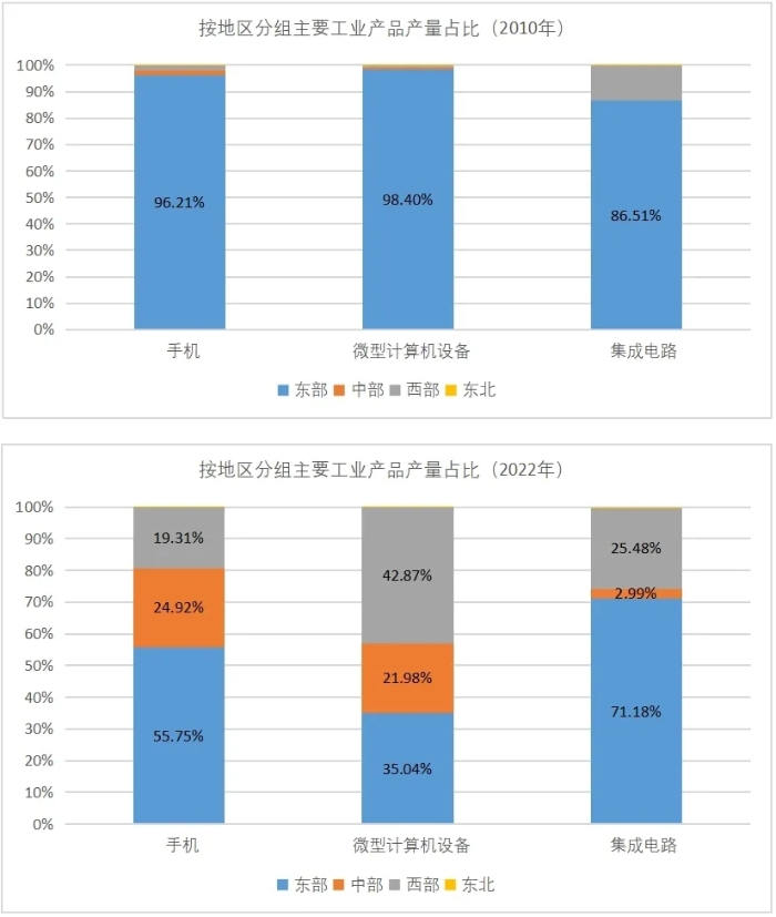 新形勢下我國高質量推動產(chǎn)業(yè)轉移 和優(yōu)化生產(chǎn)力布局的幾點思考 車璐 產(chǎn)業(yè)轉移關系著我國重大生產(chǎn)力布局和產(chǎn)業(yè)鏈、供應鏈安全穩(wěn)定。當前,我國制造業(yè)面臨發(fā)達國家尋求產(chǎn)業(yè)鏈“去中國化”和發(fā)展中國家產(chǎn)業(yè)發(fā)展體系逐步完善的“雙向擠壓”。高質量推動產(chǎn)業(yè)轉移,更有針對性地引導生產(chǎn)要素合理流動和優(yōu)化配置,對優(yōu)化我國生產(chǎn)力空間布局、促進區(qū)域協(xié)調發(fā)展具有重要意義,也是保持我國產(chǎn)業(yè)鏈供應鏈安全穩(wěn)定、建設現(xiàn)代化產(chǎn)業(yè)體系和構建新發(fā)展格局的迫切需要。 一、我國區(qū)域間產(chǎn)業(yè)轉移呈現(xiàn)的新趨勢 我國經(jīng)濟發(fā)展的空間不均衡引發(fā)了國內不同區(qū)域間的產(chǎn)業(yè)轉移,這種區(qū)際產(chǎn)業(yè)轉移既是區(qū)域間要素稟賦動態(tài)變化的體現(xiàn),也是促進欠發(fā)達地區(qū)發(fā)展的重要路徑。近年來,國內產(chǎn)業(yè)轉移層級穩(wěn)步提升,從勞動密集型產(chǎn)業(yè)的單向轉移,逐漸呈現(xiàn)出綜合轉移、雙向轉移等新趨勢。 (一)中西部地區(qū)承接傳統(tǒng)產(chǎn)業(yè)轉移和產(chǎn)業(yè)升級并行 我國產(chǎn)業(yè)轉移的結構不斷升級,中西部地區(qū)除主要承接東部地區(qū)調整優(yōu)化的勞動密集型產(chǎn)業(yè)外,還積極利用產(chǎn)業(yè)基礎和資源稟賦優(yōu)勢,加大電子信息等資本密集型和技術密集型產(chǎn)業(yè)承接力度,整體呈現(xiàn)出產(chǎn)業(yè)轉移與產(chǎn)業(yè)升級并行趨勢。近年來,戰(zhàn)略性新興產(chǎn)業(yè)也開始向中西部核心城市集聚,如合肥芯片產(chǎn)業(yè)、武漢光纖通信產(chǎn)業(yè)、西安半導體產(chǎn)業(yè)、重慶新能源汽車產(chǎn)業(yè)等。2010-2022年,我國東部地區(qū)手機、微型計算機、集成電路等主要工業(yè)產(chǎn)品產(chǎn)量占全國比重分別下降40、63和15個百分點;而中部地區(qū)三種產(chǎn)品占比分別上升23、21和3個百分點,西部地區(qū)三種產(chǎn)品占比分別上升18、42和12個百分點。 數(shù)據(jù)來源:根據(jù)《中國統(tǒng)計年鑒》《中國工業(yè)統(tǒng)計年鑒》相關數(shù)據(jù)整理計算。 圖1 2010-2022年我國分區(qū)域電子信息類主要產(chǎn)品產(chǎn)量占比 (二)資源環(huán)境要素成為東部地區(qū)產(chǎn)業(yè)轉移重要考量 隨著城市化的不斷推進和經(jīng)濟的快速發(fā)展,東部地區(qū)能源、土地、環(huán)境等要素供給日趨緊張,碳排放的限制也會加快部分高耗能產(chǎn)業(yè)向原材料豐富、新能源富集的中西部地區(qū)疏散轉移。近年來,全國電解鋁“北鋁南移、東鋁西移”,云南依托可再生能源資源優(yōu)勢主動承接電解鋁產(chǎn)能轉移,全省電解鋁產(chǎn)能接近全國的五分之一。全國實施“東數(shù)西算”工程,8個國家算力樞紐節(jié)點西部地區(qū)占據(jù)5個,10個國家數(shù)據(jù)中心集群西部地區(qū)占據(jù)7個。此外,玻璃、塑料及化工產(chǎn)品產(chǎn)業(yè),受東部地區(qū)環(huán)境容量和環(huán)境監(jiān)管限制而向中西部地區(qū)轉移。2010-2022年,東部地區(qū)平板玻璃、初級形態(tài)的塑料、化學農(nóng)藥原藥、乙烯、純堿、燒堿等主要工業(yè)產(chǎn)品產(chǎn)量占全國比重分別下降14、14、2、7、11和5個百分點,而西部地區(qū)占比分別上升5、13、4、0.2、3和7個百分點。 數(shù)據(jù)來源:根據(jù)《中國統(tǒng)計年鑒》《中國工業(yè)統(tǒng)計年鑒》相關數(shù)據(jù)整理計算。 圖2 2010-2022年我國分區(qū)域原材料類主要產(chǎn)品產(chǎn)量占比 (三)東中西及東北地區(qū)產(chǎn)業(yè)雙向轉移和區(qū)域間合作 隨著我國基礎設施建設大發(fā)展,中西部交通運輸條件與東部的差距在不斷縮小,特別是互聯(lián)網(wǎng)、移動通信等新型基礎設施的發(fā)展,使得企業(yè)可以在不同地區(qū)通過遠程辦公、在線會議等進行業(yè)務協(xié)作和管理,“遠程研發(fā)+異地中試+異地生產(chǎn)+異地操作”等模式應運而生。以汽車產(chǎn)業(yè)為例,國內知名車企相繼進入中西部,在重慶、成都、武漢、長沙、鄭州等地建成了相當規(guī)模的整車和零部件生產(chǎn)基地,但其研發(fā)中心依然設置在東部沿海發(fā)達地區(qū)。同時,中西部和東北地區(qū)也可以通過在東部地區(qū)設立研發(fā)基地,快速獲取發(fā)達地區(qū)人才、區(qū)位、資金優(yōu)勢。此外,東北和西部地區(qū)部分傳統(tǒng)優(yōu)勢產(chǎn)業(yè)出現(xiàn)向東部地區(qū)轉出的現(xiàn)象。2010-2022年,東北地區(qū)金屬切削機床、汽車和發(fā)電機組等主要工業(yè)產(chǎn)品產(chǎn)量占全國比重分別下降14、3和6個百分點,西部地區(qū)大中型拖拉機占比下降13個百分點;而同期東部地區(qū)金屬切削機床、大中型拖拉機、汽車和發(fā)電機組等主要工業(yè)產(chǎn)品產(chǎn)量占比分別上升13、11、3和5個百分點。 數(shù)據(jù)來源:根據(jù)《中國統(tǒng)計年鑒》《中國工業(yè)統(tǒng)計年鑒》相關數(shù)據(jù)整理計算。 圖3 2010-2022年我國分區(qū)域裝備制造類主要產(chǎn)品產(chǎn)量占比 二、我國區(qū)域間產(chǎn)業(yè)轉移面臨的新挑戰(zhàn) 盡管我國不斷