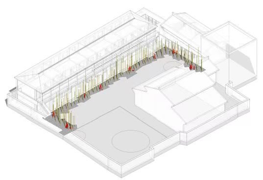 從歷史性到共時(shí)性: 歷史性建筑適應(yīng)性改造設(shè)計(jì)策略研究 ——以漳州古城比干廟為例 張健 摘要:以漳州古城重要的國(guó)家級(jí)文保建筑——比干廟的保護(hù)與利用為研究契機(jī),從基地特有的歷史文化和場(chǎng)所條件分析入手,通過(guò)漳州地方特有綠色植物“竹”的運(yùn)用,形塑與時(shí)俱進(jìn)的“共時(shí)性場(chǎng)境”,對(duì)歷史建筑進(jìn)行適應(yīng)性改造,并探討了其在豐富城市生活、傳承地方文化、激發(fā)社區(qū)商業(yè)活力等方面的巨大現(xiàn)實(shí)意義與可行性,為漳州古城未來(lái)的城市發(fā)展提供了新的視角與實(shí)踐參考。 關(guān)鍵詞:歷史建筑;比干廟;適應(yīng)性改造 漳州古城始建于唐代,至今已有1300余年的歷史。豐厚的歲月積淀、鮮明的歷史烙印,使古城格局、街巷肌理與建筑風(fēng)貌別具特色,加之原住民日常生活的點(diǎn)點(diǎn)滴滴,構(gòu)成了一個(gè)完整圖景,使其成為折射中國(guó)閩南文化最為典型的地方之一,具有重要的保護(hù)與研究?jī)r(jià)值。 漳州古城比干廟(以下簡(jiǎn)稱“比干廟”)位于漳州薌城區(qū)振成巷內(nèi),始建于宋代晚期,是漳州七縣林姓氏族合建的大宗祠,里面原供奉著中華林氏始祖比干,也是古時(shí)漳邑林氏宗族赴考往來(lái)生員的接待處。明代崇禎時(shí)期,在大學(xué)士林釬的提議下,進(jìn)行過(guò)補(bǔ)充建設(shè),購(gòu)地建“群英堂”“世美堂”。1937年,日機(jī)轟炸漳州城,比干廟正廳被炸損一側(cè)屋角?!拔母铩鼻埃雀蓮R尚基本保存完整,但“文革”期間遭受嚴(yán)重破壞,廟宇的前后進(jìn)和東西兩廡被拆除,改建為幼兒園和學(xué)校,僅中殿“忠孝堂”作為華南小學(xué)的辦公室和倉(cāng)庫(kù)使用。 歷經(jīng)千年的比干廟,有著豐厚的考古研究及歷史文化價(jià)值。2006年7月,入選第六批全國(guó)重點(diǎn)文物保護(hù)單位?,F(xiàn)僅存中進(jìn)四方殿和東廂與主體相連的回廊,具有宋元典型特征,其梁架斗拱等構(gòu)造體現(xiàn)了早期南北派建筑融合的特點(diǎn)。廟內(nèi)曾高掛明清狀元、探花牌匾,如今是弘揚(yáng)比干文化及林氏家族文化的重要場(chǎng)所,也是漳臺(tái)兩岸林氏共同的祖祠。漳州古城比干廟已被納入漳州古城“一中軸四板塊七街區(qū)”的歷史人文板塊,成為古城文化旅游的重要組成部分。 漳州古城改造上位規(guī)劃《漳州市唐宋子城(臺(tái)灣路-香港路)歷史文化街區(qū)保護(hù)規(guī)劃(2015-2030)》于2015年獲批,規(guī)劃涵蓋臺(tái)灣路、香港路等區(qū)域,有利推動(dòng)保護(hù)街區(qū)的歷史風(fēng)貌、文化遺產(chǎn)等,推動(dòng)古城的保護(hù)性開(kāi)發(fā)。在古城改造的上位規(guī)劃中,提出了政府引導(dǎo)與古城居民自覺(jué)參與相結(jié)合的雙向發(fā)展模式。其中,通過(guò)社區(qū)營(yíng)造激勵(lì)古城的活態(tài)發(fā)展,鼓勵(lì)將現(xiàn)存的各類歷史建筑轉(zhuǎn)變?yōu)椤敖纸遣┪镳^”,在保留古城歷史記憶的同時(shí),融入新的生活體驗(yàn),成為漳州古城重要的適應(yīng)性改造策略。這就要求歷史建筑能不斷適應(yīng)新時(shí)期的功能要求,并為居民提供富有時(shí)代特點(diǎn)的人文感受。為了深入探究這一過(guò)程,本次研究將選取最具代表性的古城保護(hù)建筑——比干廟,進(jìn)行詳細(xì)策劃與設(shè)計(jì)研討,以期為未來(lái)古城發(fā)展提供有益的參考和啟示。 圖1 比干廟現(xiàn)狀 一、保護(hù)價(jià)值與定位 對(duì)于具有保護(hù)價(jià)值的歷史建筑,嘗試把保護(hù)內(nèi)容從單純地保留歷史場(chǎng)所,轉(zhuǎn)變成置入新的時(shí)代功能與活動(dòng),讓歷史建筑與時(shí)代同頻發(fā)展,把保護(hù)建筑從“歷史性場(chǎng)所”逐步轉(zhuǎn)換成“共時(shí)性場(chǎng)境”。 (一)保護(hù)價(jià)值 本次適應(yīng)性改造項(xiàng)目,選取的地塊為國(guó)家級(jí)文物保護(hù)單位比干廟所在的院落(圖2)。 院子為三進(jìn)帶東西兩廡式的平面布局,現(xiàn)僅存中進(jìn)四方殿和東廂與主體相連的回廊。院中的比干廟主殿具有濃郁閩南特色,始建年代不詳,總建筑面積合計(jì)271.71m2。是漳州歷代崇文重教的歷史見(jiàn)證,是福建省具有較高歷史、科學(xué)、藝術(shù)研究?jī)r(jià)值的古建筑文物之一。 建筑價(jià)值:比干廟不僅有豐厚的歷史文化底蘊(yùn),其建筑本身即是一座難得的有較高考古研究?jī)r(jià)值的古建文物。比干廟內(nèi)部采用木質(zhì)結(jié)構(gòu),保持著宋法式的營(yíng)造特征。其建筑風(fēng)格獨(dú)特,融合了閩南地區(qū)特有的元素,如飛檐翹角、精美石雕、彩繪木雕等,展現(xiàn)著中國(guó)古代建筑的精湛技藝。廟宇的主體建筑包括山門(mén)、前殿、正殿和后殿,每部分都有獨(dú)特的裝飾細(xì)節(jié),值得細(xì)細(xì)品味。 地段價(jià)值:院落靠近漳州古城西入口及游客中心,南臨洋老巷,北倚振成巷,是游客感受閩南傳統(tǒng)建筑風(fēng)情的開(kāi)始,也是展示民俗特色的起點(diǎn)。 現(xiàn)存問(wèn)題:現(xiàn)存建筑自1937年起多次遭受損壞,被列為國(guó)家級(jí)文物保護(hù)單位后,通過(guò)恢復(fù)手段修葺一新。但修繕后的院落,圍墻高聳,空間封閉,存在重保護(hù)、輕利用的現(xiàn)象,使建筑遺產(chǎn)陷入維