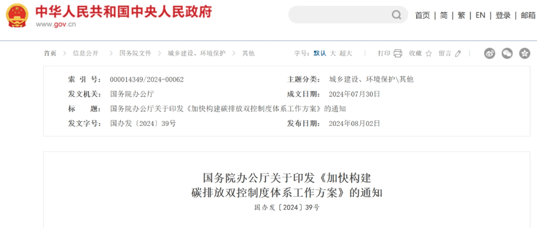 錨定減排目標(biāo) 構(gòu)筑制度體系 碳達峰碳中和工作邁入新階段 ——《加快構(gòu)建碳排放雙控制度體系工作方案》專家解讀 張英健 木其堅 近日,國務(wù)院辦公廳印發(fā)了《加快構(gòu)建碳排放雙控制度體系工作方案》(國辦發(fā)〔2024〕39號,以下簡稱《方案》)?!斗桨浮坟瀼芈鋵嶞h的二十大和二十屆二中、三中全會精神,對構(gòu)建碳排放雙控制度體系重點任務(wù)作出系統(tǒng)部署,對于建立能耗雙控向碳排放雙控全面轉(zhuǎn)型新機制、積極穩(wěn)妥推進碳達峰碳中和、促進經(jīng)濟社會發(fā)展全面綠色轉(zhuǎn)型具有重要意義。 一、碳排放雙控制度是實現(xiàn)碳達峰碳中和目標(biāo)的關(guān)鍵一招 近年來,各地區(qū)、各部門堅持以習(xí)近平新時代中國特色社會主義思想為指導(dǎo),深入貫徹落實習(xí)近平總書記關(guān)于碳達峰碳中和的重要論述和指示批示精神,推動“雙碳”工作取得良好開局和積極成效。黨中央、國務(wù)院印發(fā)《關(guān)于完整準(zhǔn)確全面貫徹新發(fā)展理念做好碳達峰碳中和工作的意見》,國務(wù)院發(fā)布《2030年前碳達峰行動方案》,各有關(guān)部門出臺重點領(lǐng)域、重點行業(yè)實施方案和支撐保障方案,并系統(tǒng)部署了加快建立統(tǒng)一規(guī)范的碳排放統(tǒng)計核算體系、綠色低碳先進技術(shù)示范工程、產(chǎn)品碳足跡管理體系等一系列重大政策措施,碳達峰碳中和“1+N”政策體系構(gòu)建完成,為碳達峰碳中和目標(biāo)的實現(xiàn)奠定了堅實的制度基礎(chǔ)。 同時,我國碳達峰碳中和工作仍面臨嚴(yán)峻挑戰(zhàn)。受新冠疫情和國內(nèi)外多重因素影響,“十四五”規(guī)劃《綱要》確定的節(jié)能降碳約束性指標(biāo)完成情況不及預(yù)期。在“十四五”“十五五”交接的關(guān)鍵節(jié)點,《方案》首次全面完整闡述了碳排放雙控的制度架構(gòu),及時回答了碳排放雙控“是什么”和“怎么辦”的問題?!斗桨浮返某雠_,標(biāo)志著能耗雙控向碳排放雙控全面轉(zhuǎn)型取得重大進展,為當(dāng)前和今后一段時間的“雙碳”工作明確了工作主線、指明了前進方向、謀劃了路徑措施,對推進“雙碳”工作具有重大意義。 二、凝聚各方力量,筑牢碳排放雙控制度的四梁八柱 習(xí)近平總書記強調(diào),“實現(xiàn)‘雙碳’目標(biāo)是一場廣泛而深刻的變革,不是輕輕松松就能實現(xiàn)的”。面對紛繁復(fù)雜的國際國內(nèi)形勢,面對新一輪科技革命和產(chǎn)業(yè)變革,更需要平衡好發(fā)展和減排、整體和局部、長遠(yuǎn)目標(biāo)和短期目標(biāo)、政府和市場間的關(guān)系?!斗桨浮妨⒆惝?dāng)前實際,以建立健全地方碳考核、行業(yè)碳管控、企業(yè)碳管理、項目碳評價、產(chǎn)品碳足跡等政策制度和管理機制為重點,系統(tǒng)部署了六項重點任務(wù)。 在國家層面,將碳排放納入總體規(guī)劃。這是將碳達峰、碳中和目標(biāo)任務(wù)全面融入經(jīng)濟社會發(fā)展中長期規(guī)劃的必然要求?!笆逦濉睍r期,將碳排放強度降低作為國民經(jīng)濟和社會發(fā)展約束性目標(biāo),合理確定五年規(guī)劃期碳排放目標(biāo),并對重點任務(wù)和重大工程進行統(tǒng)籌部署,開展碳排放總量核算。 在地方層面,建立碳排放目標(biāo)評價考核制度。要實現(xiàn)“雙碳”目標(biāo),必須堅持全國一盤棋,而“指揮棒”就是區(qū)域的碳排放目標(biāo)考核制度。在合理分解指標(biāo)的基礎(chǔ)上,制定出臺碳達峰碳中和綜合評價考核辦法,統(tǒng)籌建立評價考核指標(biāo)體系。推動省市兩級建立碳排放預(yù)算管理制度,強化對區(qū)域碳排放的管理和調(diào)控能力。 在重點行業(yè)層面,建立碳排放預(yù)警管控機制。電力、鋼鐵、有色、建材、石化、化工等工業(yè)行業(yè)和城鄉(xiāng)建設(shè)、交通運輸?shù)阮I(lǐng)域是碳減排的重點。要合理劃定行業(yè)碳減排的范圍,摸清行業(yè)領(lǐng)域碳排放底數(shù)和減排潛力,常態(tài)化開展碳排放監(jiān)測分析預(yù)警,并視情采取管控措施。 在企業(yè)層面,強化節(jié)能降碳管理制度。重點用能和碳排放單位是碳排放管理的“牛鼻子”。要制定出臺重點用能和碳排放單位節(jié)能降碳管理辦法,將碳排放管控要求納入現(xiàn)行重點用能單位管理制度。充分發(fā)揮市場機制調(diào)控作用,擴大全國碳排放權(quán)交易市場覆蓋范圍,探索配額有償分配機制;健全全國溫室氣體自愿減排交易市場,推動更大范圍減排;完善綠證交易市場,促進綠色電力消費。 在項目層面,開展固定資產(chǎn)投資項目碳排放評價。以重大項目為重點,結(jié)合碳預(yù)算制度,把好碳排放“入口關(guān)”。將碳排放評價有關(guān)要求納入固定資產(chǎn)投資項目節(jié)能審查,對項目用能和碳排放情況開展綜合評價,制定重點行業(yè)建設(shè)項目溫室氣體排放環(huán)境影響評價技術(shù)規(guī)范。 在產(chǎn)品層面,建立產(chǎn)品碳足跡管理體系。碳足跡管理是連接國際與國內(nèi)、政府與企業(yè)的重要發(fā)力點。要加快制定產(chǎn)品碳足跡規(guī)則標(biāo)準(zhǔn),按照急用先行原則制定一批碳足跡核算規(guī)則標(biāo)準(zhǔn)。加強碳足跡背景數(shù)據(jù)庫建設(shè),建立定期更新發(fā)布機制。加快建