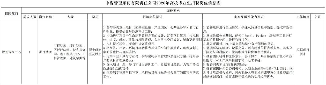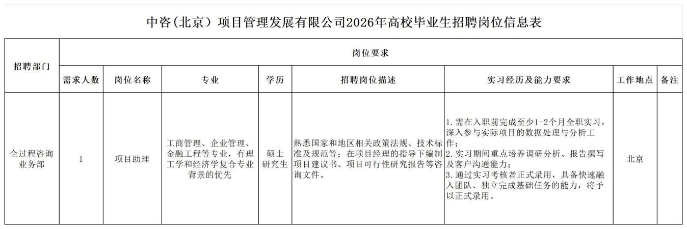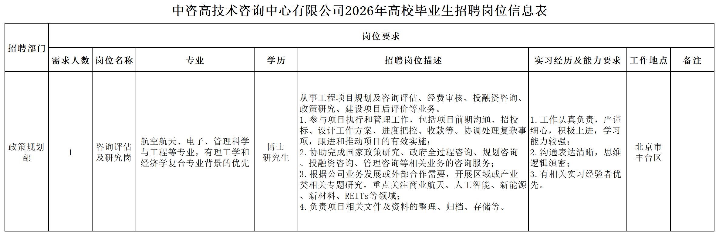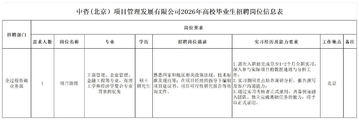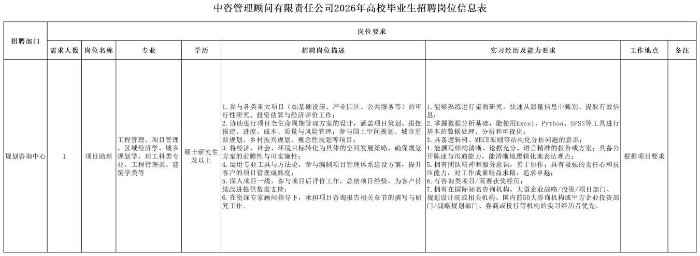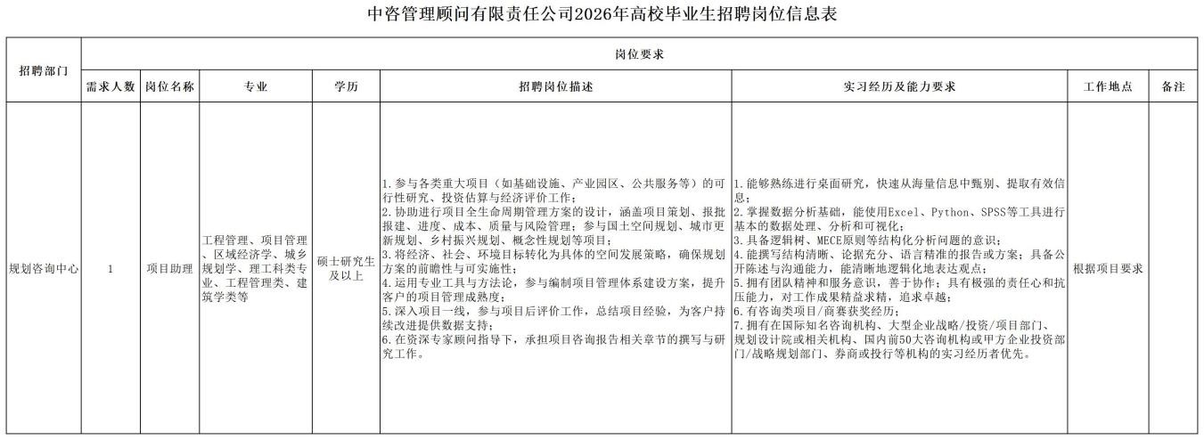 中國(guó)國(guó)際工程咨詢有限公司所屬企業(yè)2026年校園招聘公告 | ||||