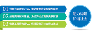 在國家全面建設(shè)小康社會的進(jìn)程中積極貢獻(xiàn)我們的力量,在國家經(jīng)濟(jì)社會發(fā)展戰(zhàn)略的制定和實施中不斷奉獻(xiàn)我們的智慧,在國家投資決策上努力提供科學(xué)的依據(jù),以凝聚思想、優(yōu)質(zhì)高效的咨詢成果助力社會民生事業(yè),用心做好服務(wù),爭做工程咨詢行業(yè)的優(yōu)秀企業(yè)公民。 |