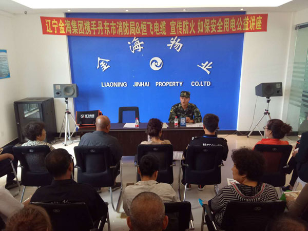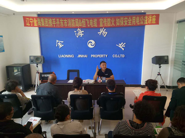 9月15日上午,物業(yè)公司攜手丹東市消防局及恒飛電纜在濱江3號(hào)物業(yè)會(huì)議室進(jìn)行消防、用電安全知識(shí)講座,向物業(yè)各轄區(qū)業(yè)主代表普及消防、用電安全等常識(shí)。