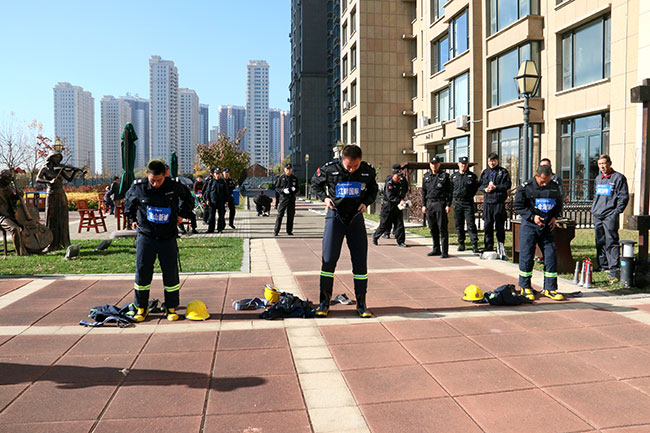 第三項(xiàng)進(jìn)行的是保安消防技能比賽。