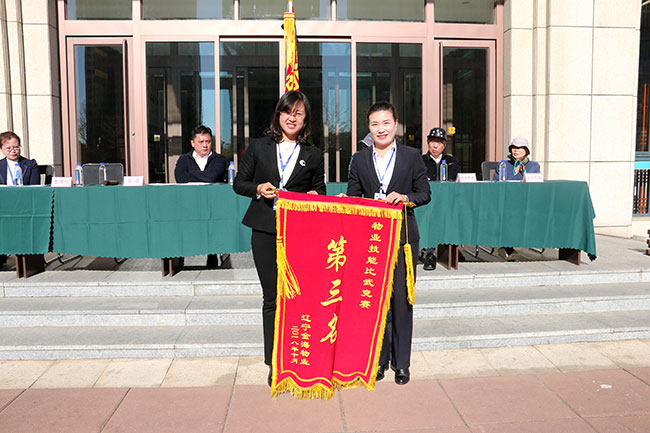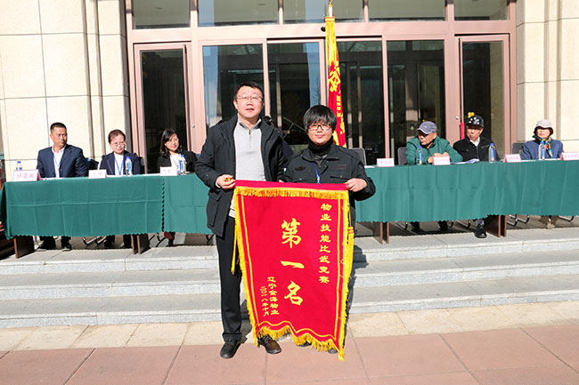 丹東市小區(qū)辦李主任、金海集團(tuán)副總經(jīng)理李郁、金海集團(tuán)辦公室主任李秀悅分別為獲獎(jiǎng)單位頒發(fā)錦旗。