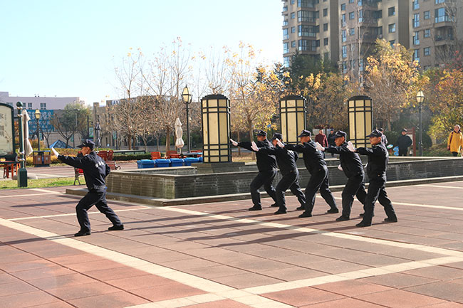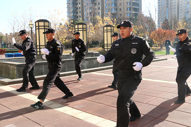 金海物業(yè)的保安有嚴(yán)格的錄用、培訓(xùn)、操練和日常工作標(biāo)準(zhǔn)規(guī)范,他們之中很多是部隊(duì)復(fù)轉(zhuǎn)軍人,還有的是武警出身。