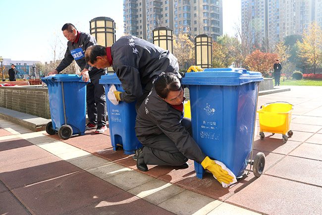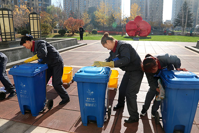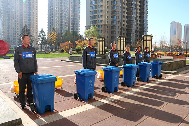 由來(lái)自金海物業(yè)各管理部的保潔員代表參賽。他們現(xiàn)場(chǎng)回答了金海物業(yè)保潔工作規(guī)范有關(guān)測(cè)試題。之后還在比賽現(xiàn)場(chǎng)完成了保潔實(shí)際操作比賽項(xiàng)目——垃圾箱清潔。參賽保潔員們精明強(qiáng)干,干脆利落,充分展現(xiàn)了金海物業(yè)保潔隊(duì)伍的高水準(zhǔn)。